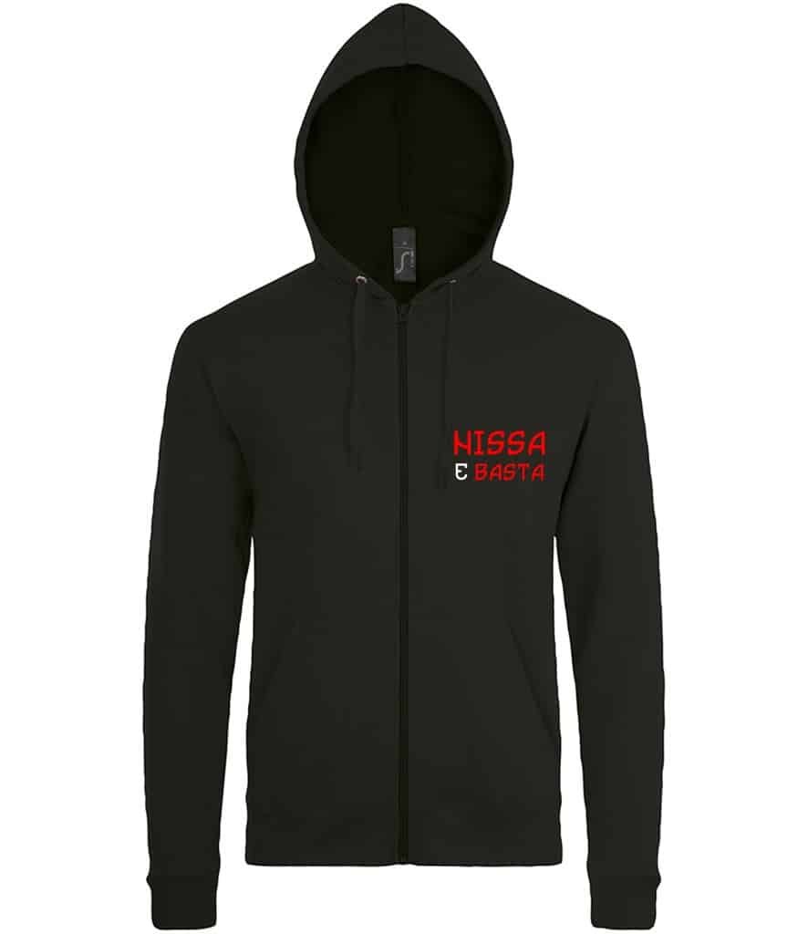Flocage « Nissa e basta » en 2 couleurs, sur le coeur et en gros dans le dos.