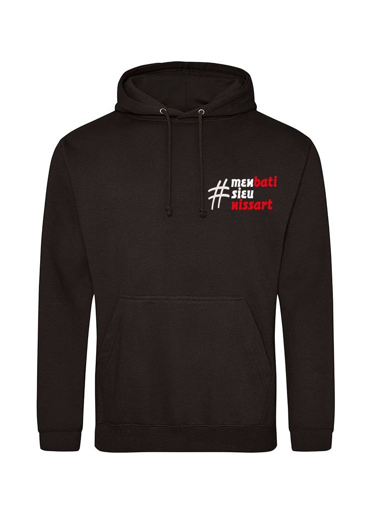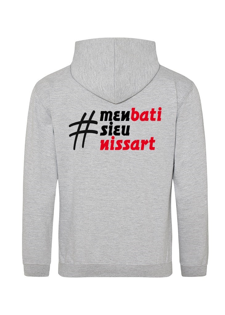 Veste de Nice #M’en bati sieu Nissart noire ou grise, à capuche et poches kangourou, agréable et fonctionnelle.