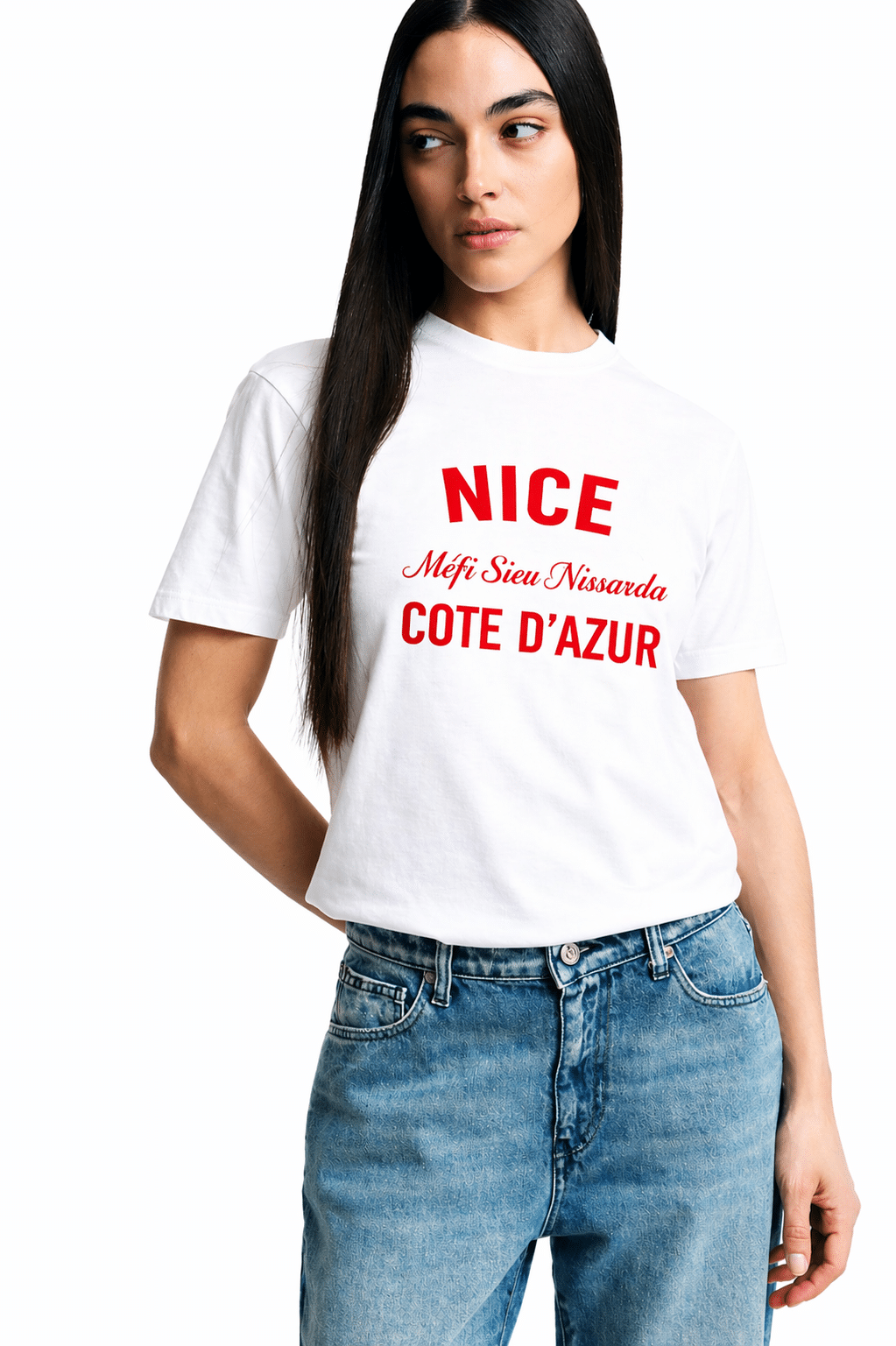 Flocage » Nice côte d’azur, Mèfi Sieu Nissarda » sur la poitrine