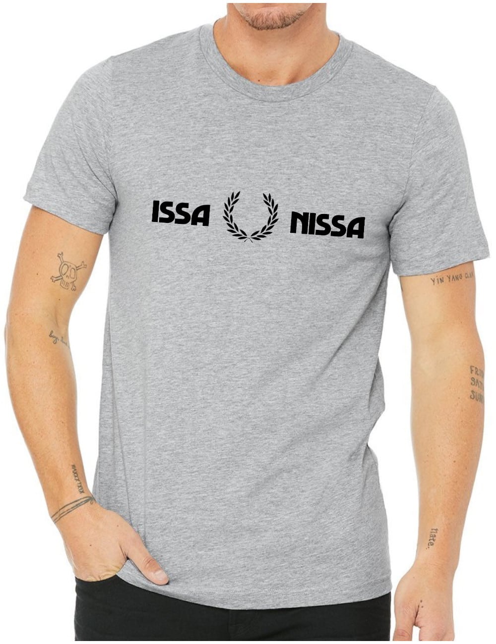 Flocage issa nissa avec laurier sur le torse.