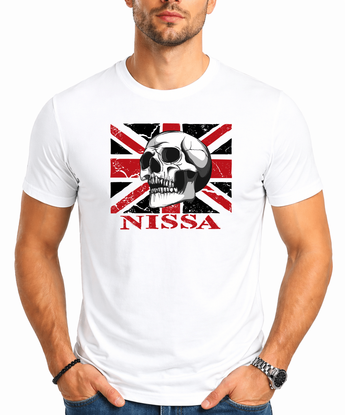 Affirmez votre caractère avec ce t-shirt Nissa au design percutant. Sur fond de drapeau revisité en rouge, noir et blanc, un imposant crâne graphique apporte une touche rock et audacieuse. Le logo Nissa en bas souligne fièrement l’esprit Nissart et l’attachement à notre identité.