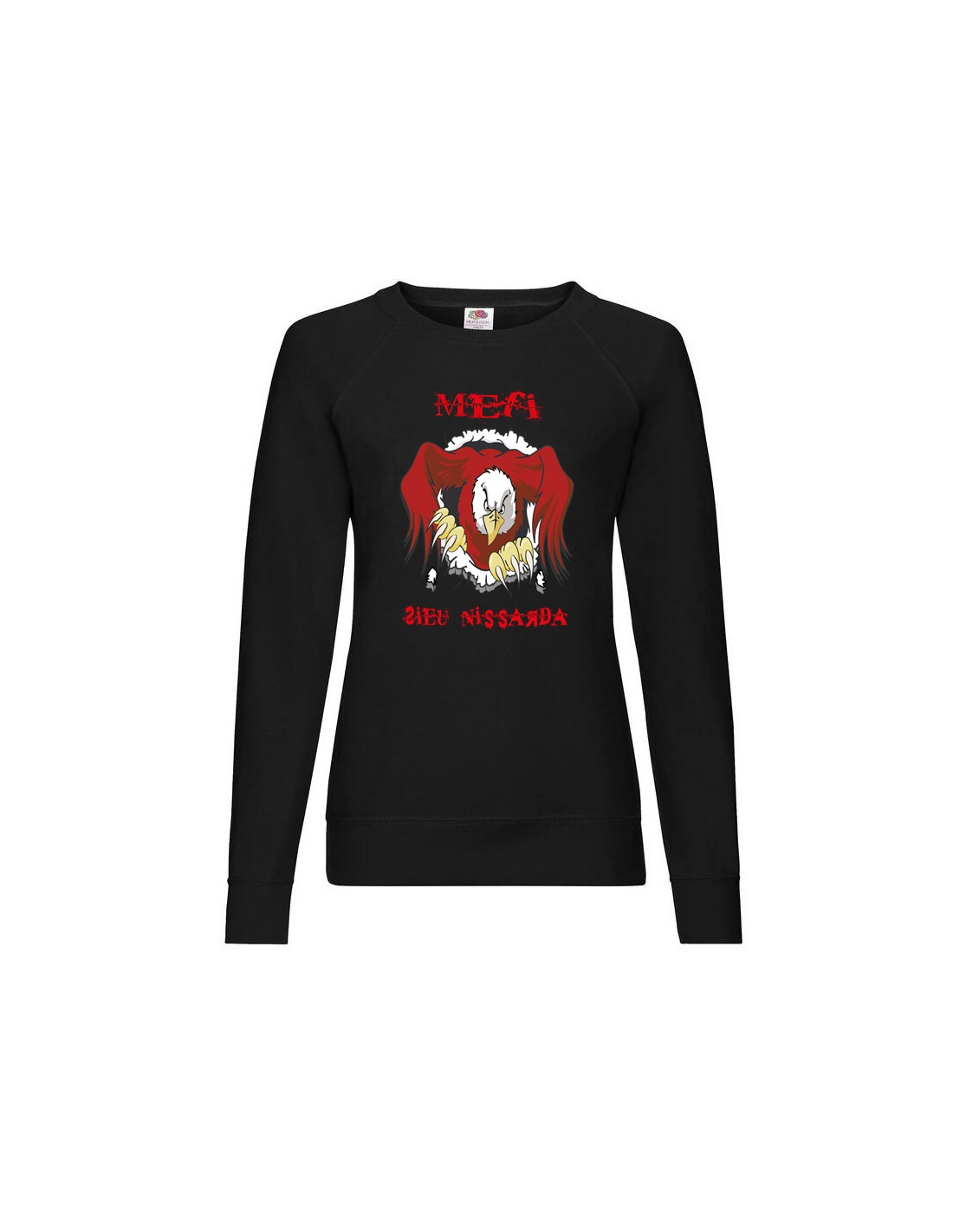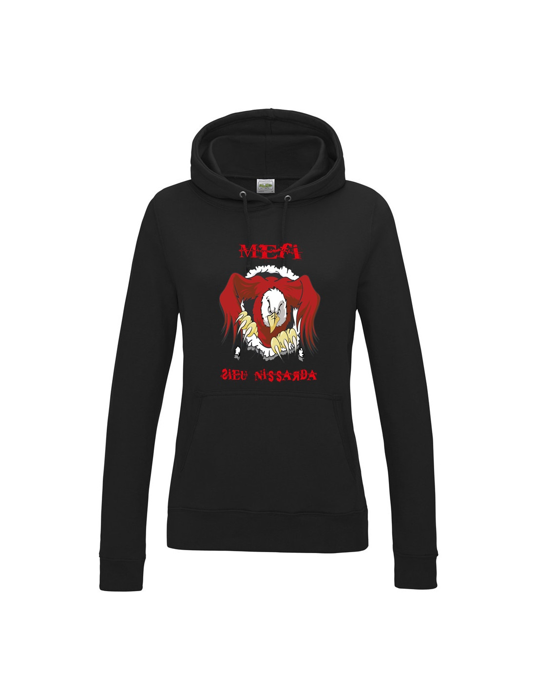 Le "Méfi sieù Nissart" pour les filles ça donne "Méfi sieù Nissarda", avec ce sweat-shirt on aura compris qu'il ne faut pas vous taquiner, à l'image de l'aigle floqué sur ces vêtements.