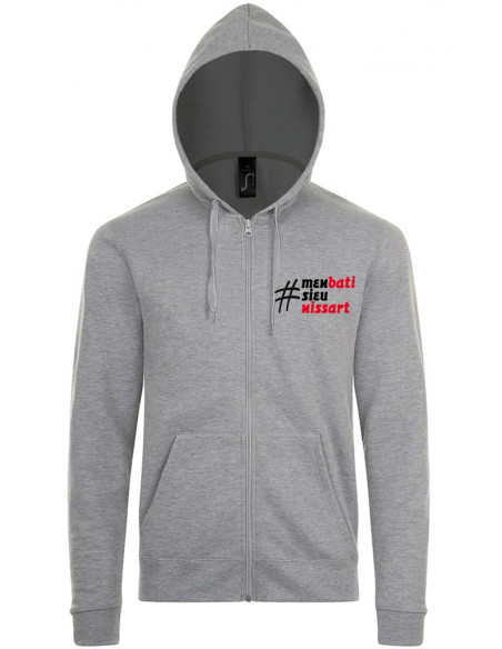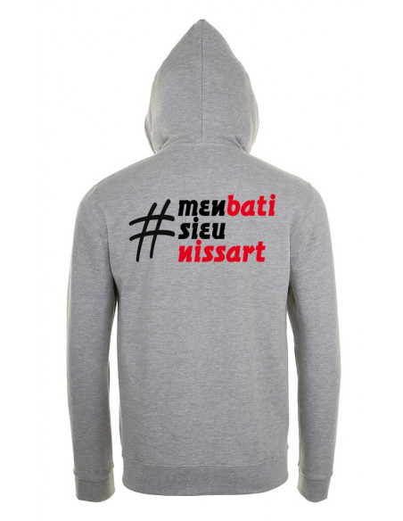 Veste de Nice #M'en bati sieu Nissart noire ou grise, à capuche et poches kangourou, agréable et fonctionnelle.